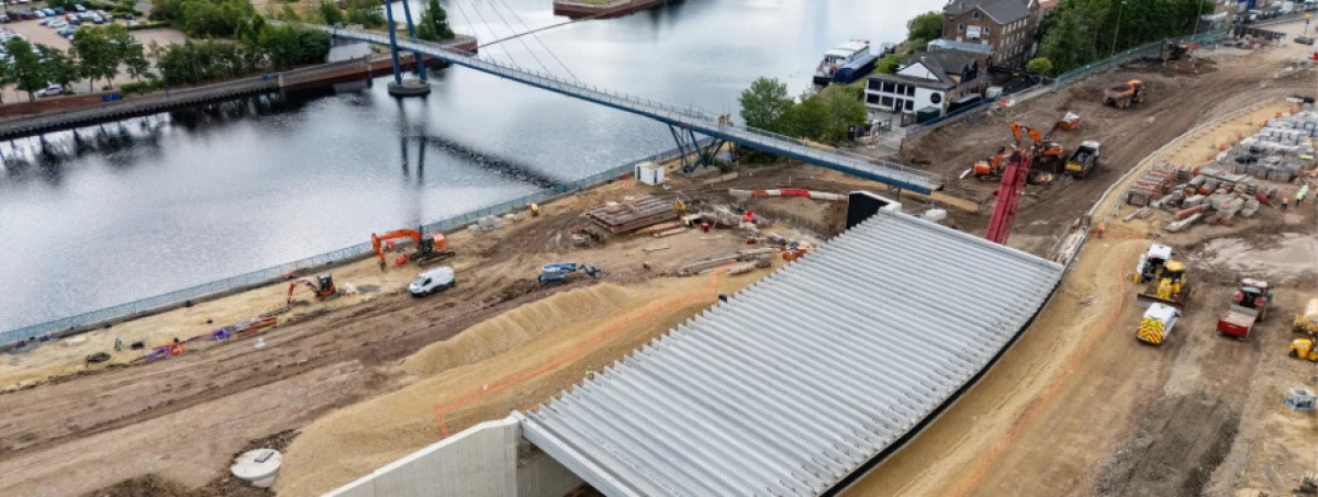 Stockton-on-Tees’ £23 million regeneration project has reached a pivotal stage, as Esh Construction installs 47 concrete beams for a landmark land bridge connecting the High Street to the River Tees. Designed to improve accessibility and anchor the town’s new urban park, the structure forms part of a broader transformation set to reshape the town centre into a nationally recognised public destination.
